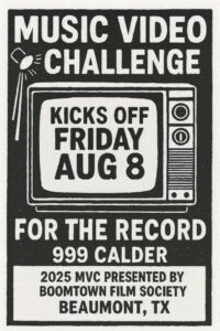 Boomtown’s Music Video Challenge has is back again! We’re hitting Play on this fun & free filmmaking contest Friday, August 8, when teams will receive a song from our collection of music made by a variety of local Southeast Texas bands. They’ll then have two weeks to create their music video for that song before turning it in on the night of Saturday, August 23. That’s when all the music videos will be screened together with the audience choosing a favorite. Winners will receive fabulous prizes! Be sure to read all the deets below.
