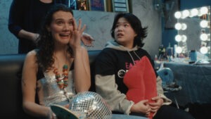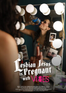 A berserk 19-year-old TikToker (Liza Rose) is plucked off the internet, thrust onstage, and declared “Lesbian Jesus!”. She travels the country by bus with her under-qualified Momager (Christine) and loving girlfriend Avery (who works the merch table and designed shirts that say “Eat Crotch!”).